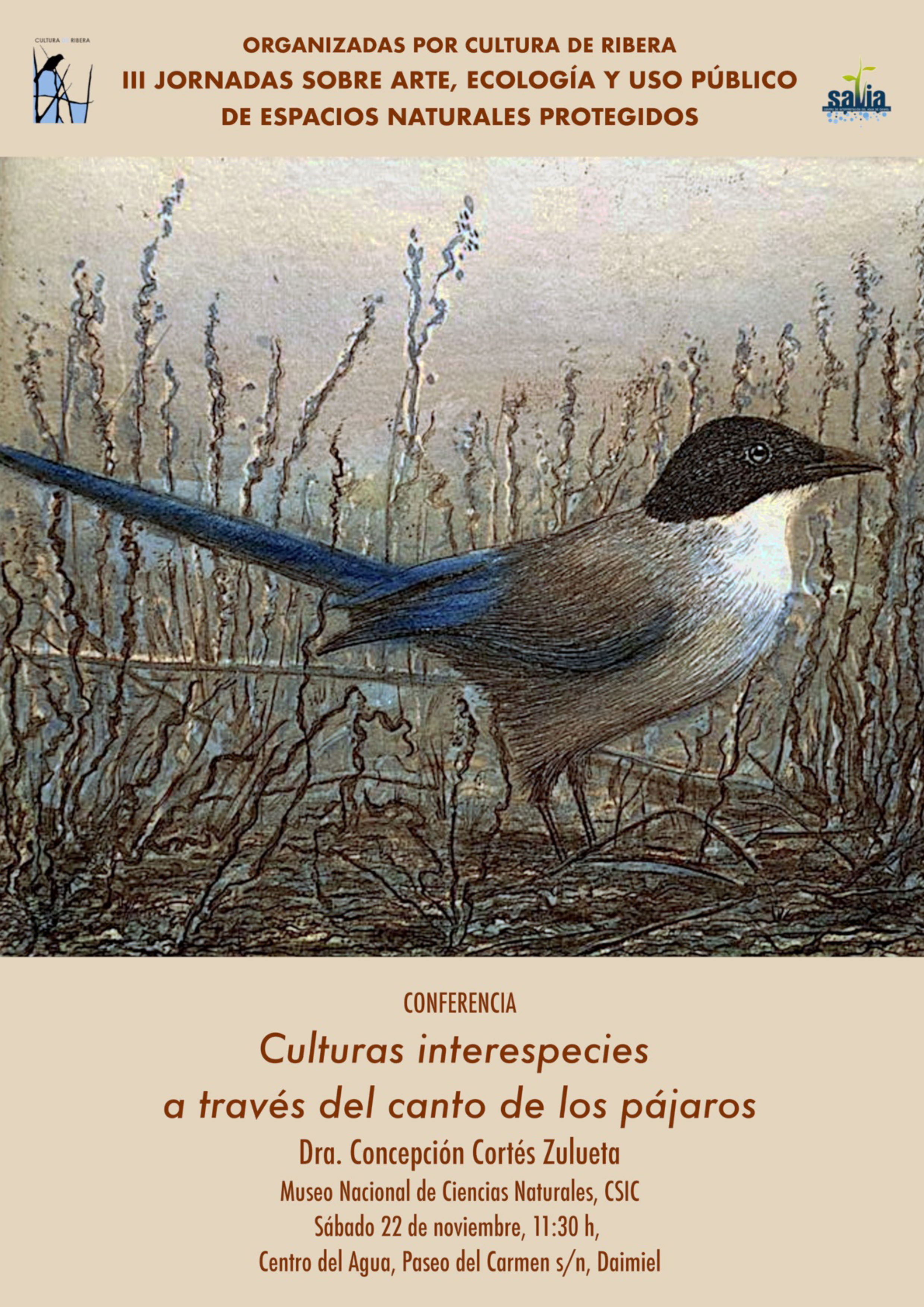 Dentro de las III Jornadas sobre Arte, Ecología y Uso Público de Espacios Naturales Protegidos (organizadas por Cultura de Ribera), se impartirá la conferencia: "Culturas interespecies a través del canto de los pájaros".