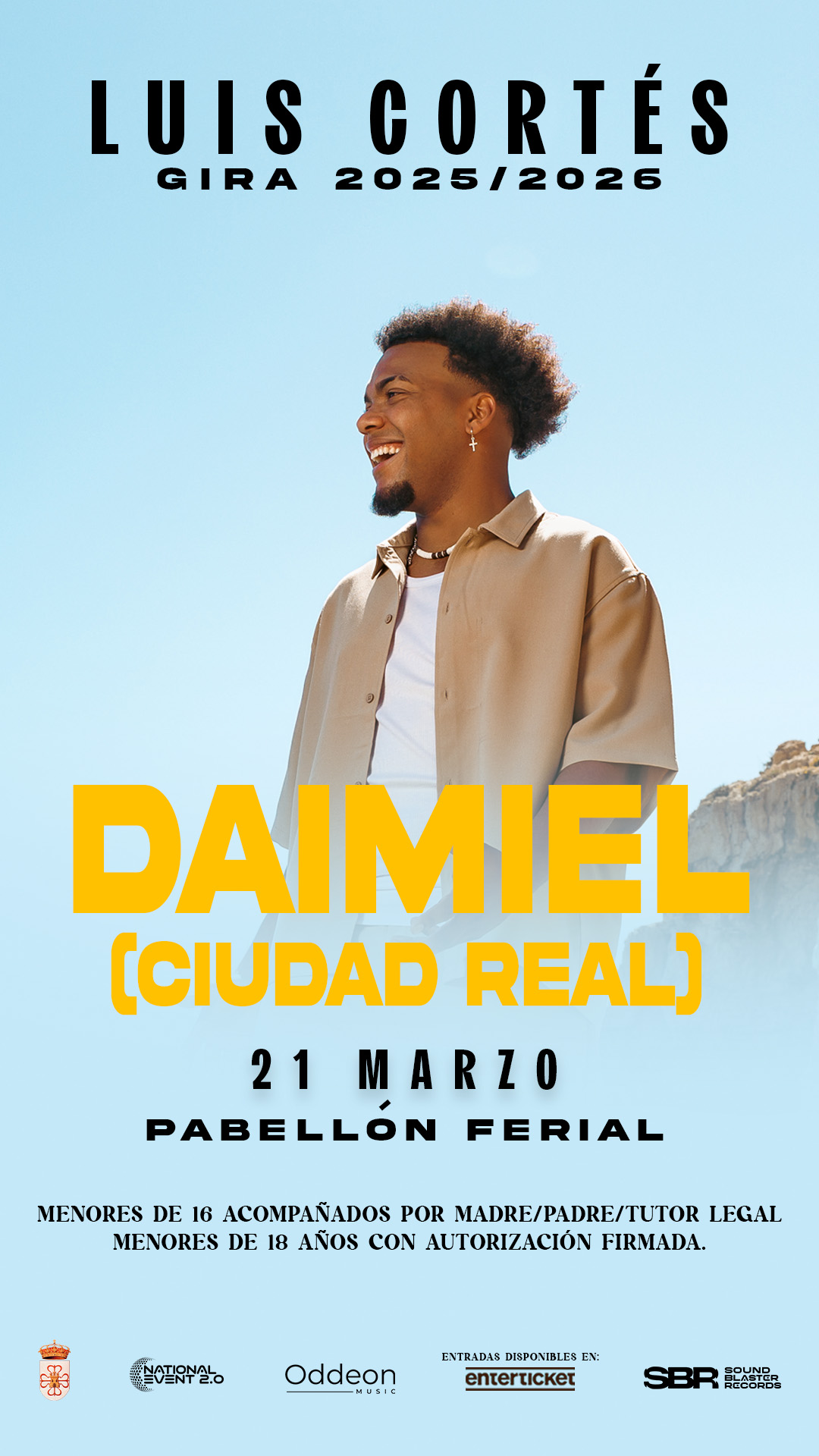 El talento de Luis Cortés llega a Daimiel dentro de su esperada gira 2025/2026. Prepárate para una noche inolvidable en el Pabellón Ferial, donde el artista desplegará todo su carisma y música en directo.