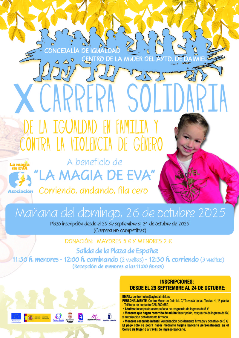 NUESTRO PROPÓSITO:La Concejalía de Igualdad y el Centro de Mujer de Daimiel, lanzan en su X edición la Carrera Solidaria de la Igualdad en Familia y contra la Violencia de género.