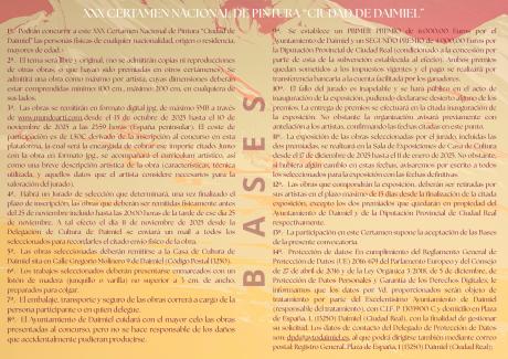 La cita artística incorpora por primera vez una fase de selección telemática a través de la plataforma Mundoarti.com. Con esta medida, la delegación de Cultura busca facilitar la participación, reducir costes a los artistas y situar a Daimiel en la tendencia entre los certámenes nacionales de pintura.