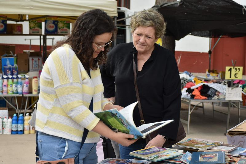 Daimiel Noticias. - Libros a tres euros, a dos y a uno. Uno de los puestos del mercadillo ofrecía este martes esta oportunidad tan especial. Un año más, la Biblioteca Municipal ha salido al parque de El Carmen para intercambiar fondos descatalogados a cambio de un pequeño donativo que, en esta ocasión, se va a destinar a la Asociación para la Lucha Contra las Enfermedades Renales de Ciudad Real (ALCER).