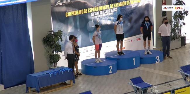 Daimiel Noticias.- Laura Cabanes ha vuelto a sacar su mejor versión en el momento y lugar oportuno. La nadadora daimieleña pulverizó este martes su mejor marca en la prueba de 400 estilos y esos más de seis segundos de mejora le han servido para proclamarse campeona de España de la prueba entre las nadadoras de 15 años. Además, los 5:02.24 que marcó en la final del Campeonato de España Infantil de Natación es récord absoluto de Castilla-La Mancha. Ninguna nadadora ha nadado más rápido esta prueba en la región.