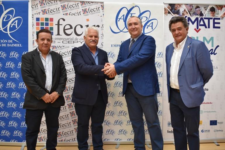 Daimiel Noticias. - La reapertura de ‘La Granja Escuela’ como sede de cursos y formación para el empleo está a punto de concretarse. El alcalde de Daimiel, Leopoldo Sierra, dejó entrever este martes que las conversaciones con la Junta de Comunidades están muy avanzadas y que su puesta en funcionamiento “va a ser una realidad en breves fechas”. Lo hizo en el acto donde se presentó la integración de la Asociación de Empresarios de Daimiel (AEDA) en la Federación de Empresarios de Ciudad Real (FECIR), y que también sirvió para que la patronal provincial diera a conocer las ventajas que la FP dual ofrece a los emprendedores.