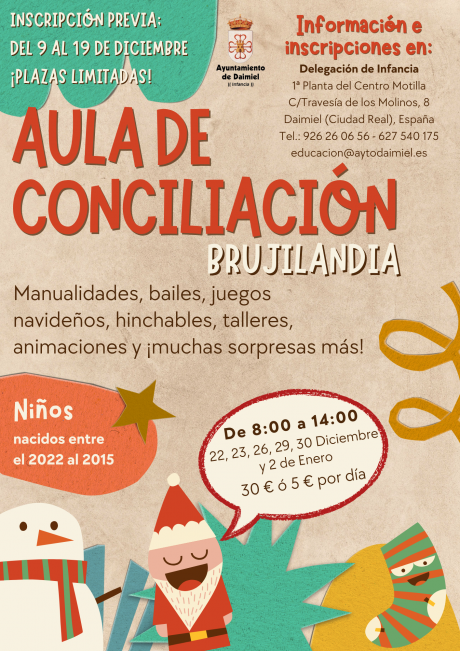Daimiel Noticias.- Brujilandia, el servicio organizado por la delegación de Infancia instalado en el Pabellón Ferial, ha abierto sus puertas hoy viernes 26 de diciembre para llenar ese espacio de ocio y actividades para los más pequeños durante las fechas navideñas.
