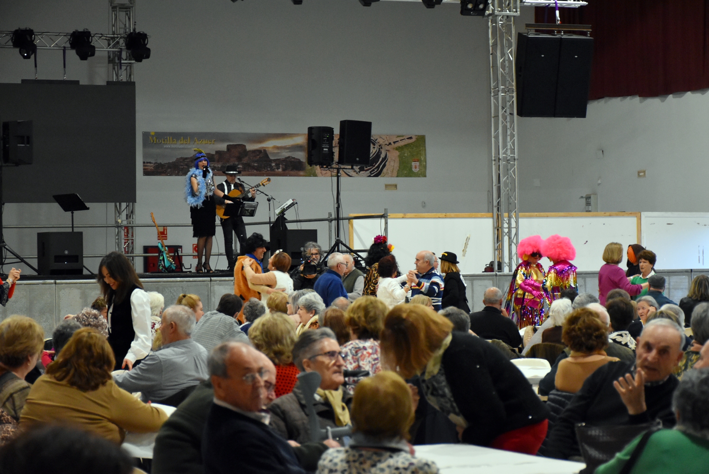 Daimiel Noticias.- Color, diversión y música en la fiesta de mayores de Carnaval de Daimiel. Puntuales a la cita acudieron un año más al Pabellón Ferial la tarde del lunes para disfrutar de una velada en la que no faltaron los pasodobles, las rumbas y grandes éxitos de voz de Lola Pérez, que hicieron bailar desde primera hora a los más dispuestos.
