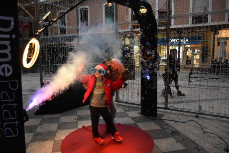 Otro de los grandes atractivos del evento fue la plataforma de vídeo 360º, ubicada en el interior del cubo de regalo de la plaza. La propuesta fue acogida con gran interés por los daimieleños, que formaron cola para posar ataviados con divertidos adornos como gafas o sombreros mientras una cámara giraba a su alrededor para obtener un divertido recuerdo en forma de vídeo. Tras finalizar la grabación, los visitantes podían descargarse su vídeo a través de un código QR.