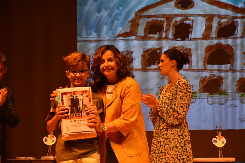 Los alumnos y alumnas reconocidos por categorías recibieron este miércoles por la tarde su premio en el teatro Ayala Durante al acto se proyectó un vídeo resumen del 7 de junio cuando los escolares salieron a pintar diferentes espacios daimieleños. El alcalde, Leopoldo Sierra, entregó los reconocimientos de una convocatoria cuya exposición ya puede visitarse en la primera planta de la Casa de Cultura.
