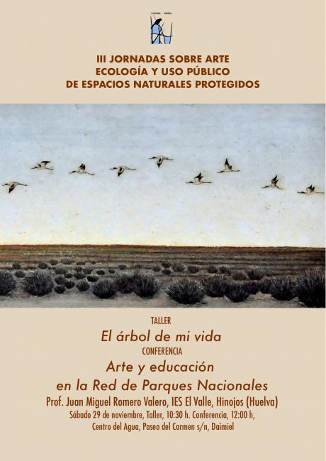 El sábado 29 de noviembre se celebrará a las 10:30 horas en el Centro del Agua SAVIA acogerá una doble cita de las ‘III Jornadas sobre Arte, Ecología y Uso público de espacios naturales protegidos’. Las actividades comenzarán con un taller titulado ‘El árbol de mi vida’, seguido de la conferencia ‘Arte y educación en la red de parques nacionales’, a cargo del profesor Juan Miguel Romero Valero.