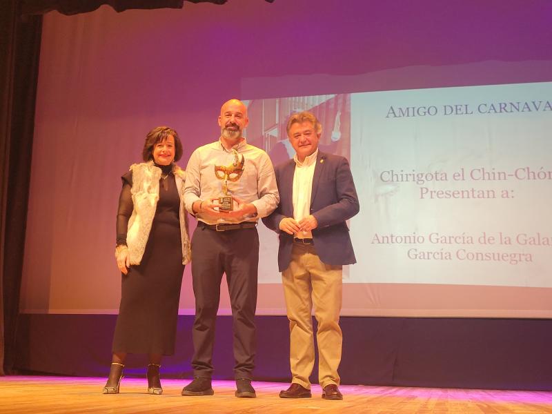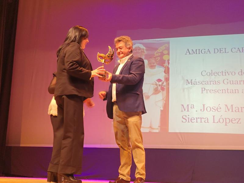 En esta edición, la Asociación Amigos del Arte distinguió a Jesús Loro García Carpintero, socio fundador de la entidad; la Peña El Cencerro reconoció a la costurera María Isabel Doctor Doctor; la chirigota El Chin Chón premió a Antonio García de la Galana García Consuegra; la Peña La Garrota hizo lo propio con Mª Ángeles González de la Aleja García Carpintero; la chirigota El Culo de la Manola distinguió a Jorge Acosta Torres, uno de sus fundadores; y el Colectivo de las Máscaras Guarronas reconoció la implicación de María José Martín de la Sierra López Romero.