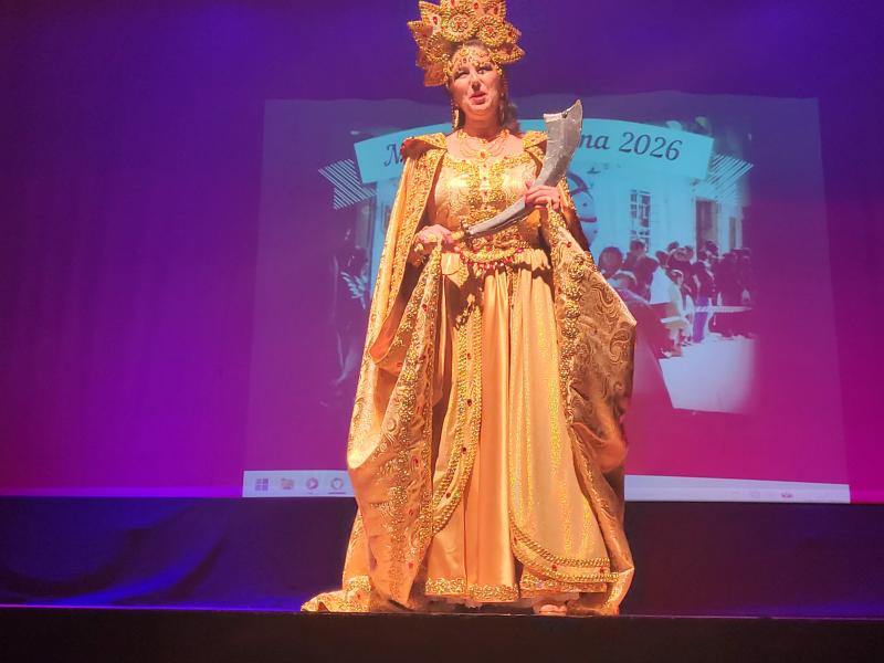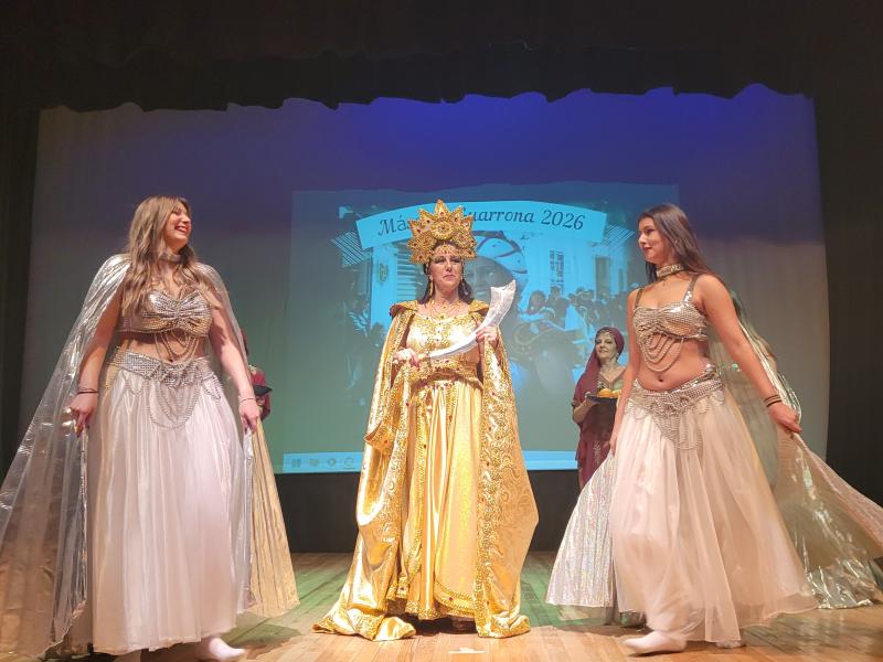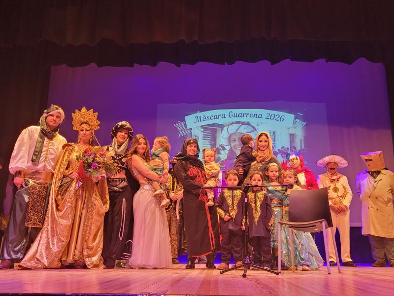 El momento más esperado llegó con la espectacular entrada de la Máscara Guarrona 2026, que simuló un enfrentamiento entre moros y cristianos. Manoli Ruiz de Pascual apareció subida en un trono portado por parte de su séquito, en una cuidada puesta en escena y coreografía que levantó los aplausos del público. Ya en el escenario, el acto vivió uno de sus instantes más emotivos cuando sus hijos, Alba y Santiago, subieron para dedicarle palabras de cariño y agradecimiento. Alba recordó cómo su madre le inculcó desde pequeña el amor por el carnaval y por una tradición tan arraigada en Daimiel.