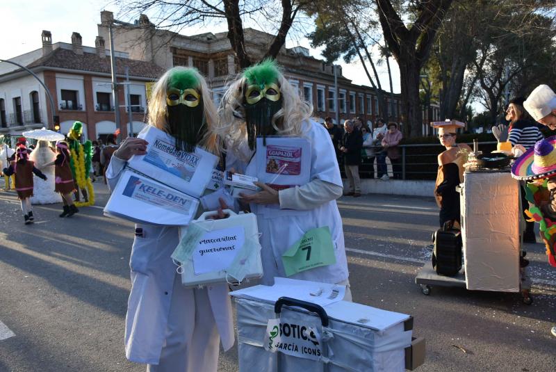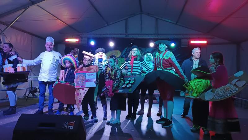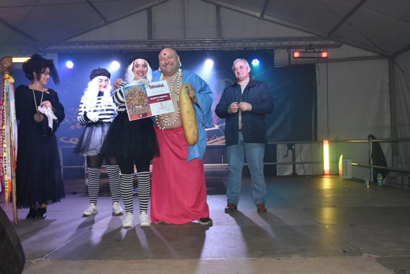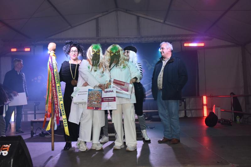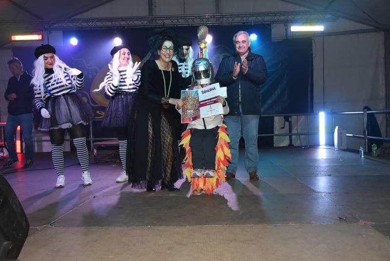 Desde las cuatro de la tarde, elaborados y originales disfraces convivieron con las clásicas máscaras improvisadas, ataviadas con lo primero que encuentran y el rostro oculto. Todos ellos recorrieron el habitual trayecto hasta la carpa, situada junto al Ayuntamiento, donde se entregaron los premios tras la ambientación de la orquesta Planeta 80.