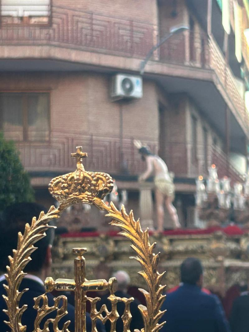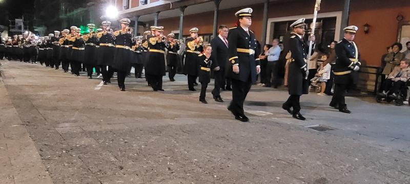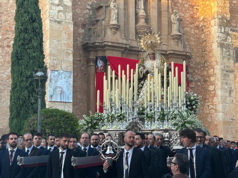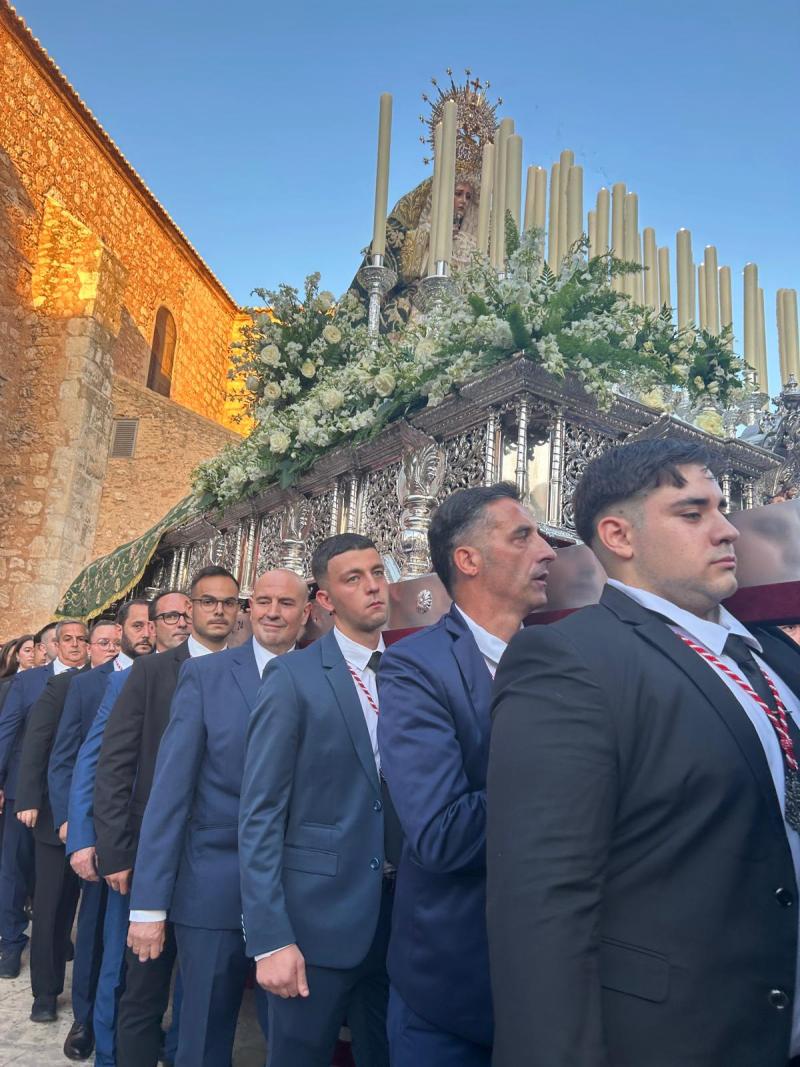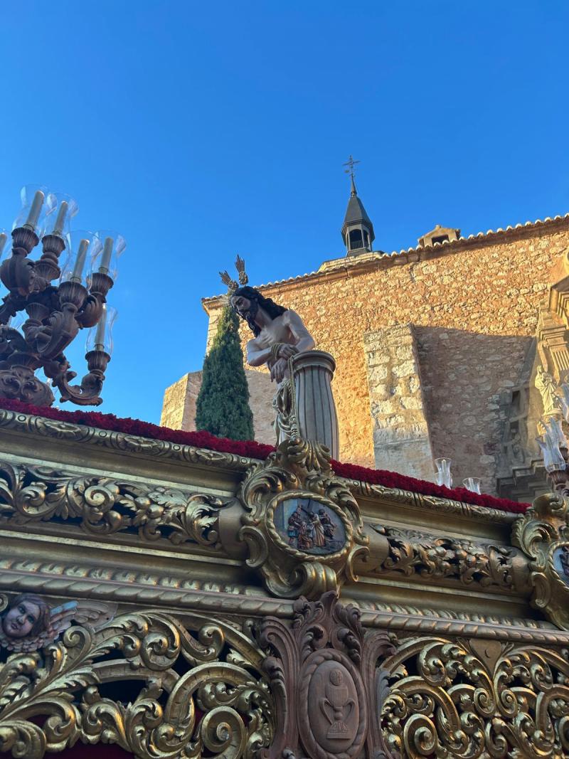 Uno de los momentos más sobrecogedores de la tarde se vivió en la rotonda de la Cruz Roja, donde tuvo lugar el encuentro entre el Cristo de la Columna y la Virgen de la Amargura. La música fue protagonista de este instante: la Banda de Cornetas y Tambores del Santísimo Cristo de la Columna y el cuarteto Staccato, de Tarancón, interpretaron juntos La Pasión, creando una atmósfera de emoción contenida que el público acompañó con un silencio respetuoso y aplausos sentidos.