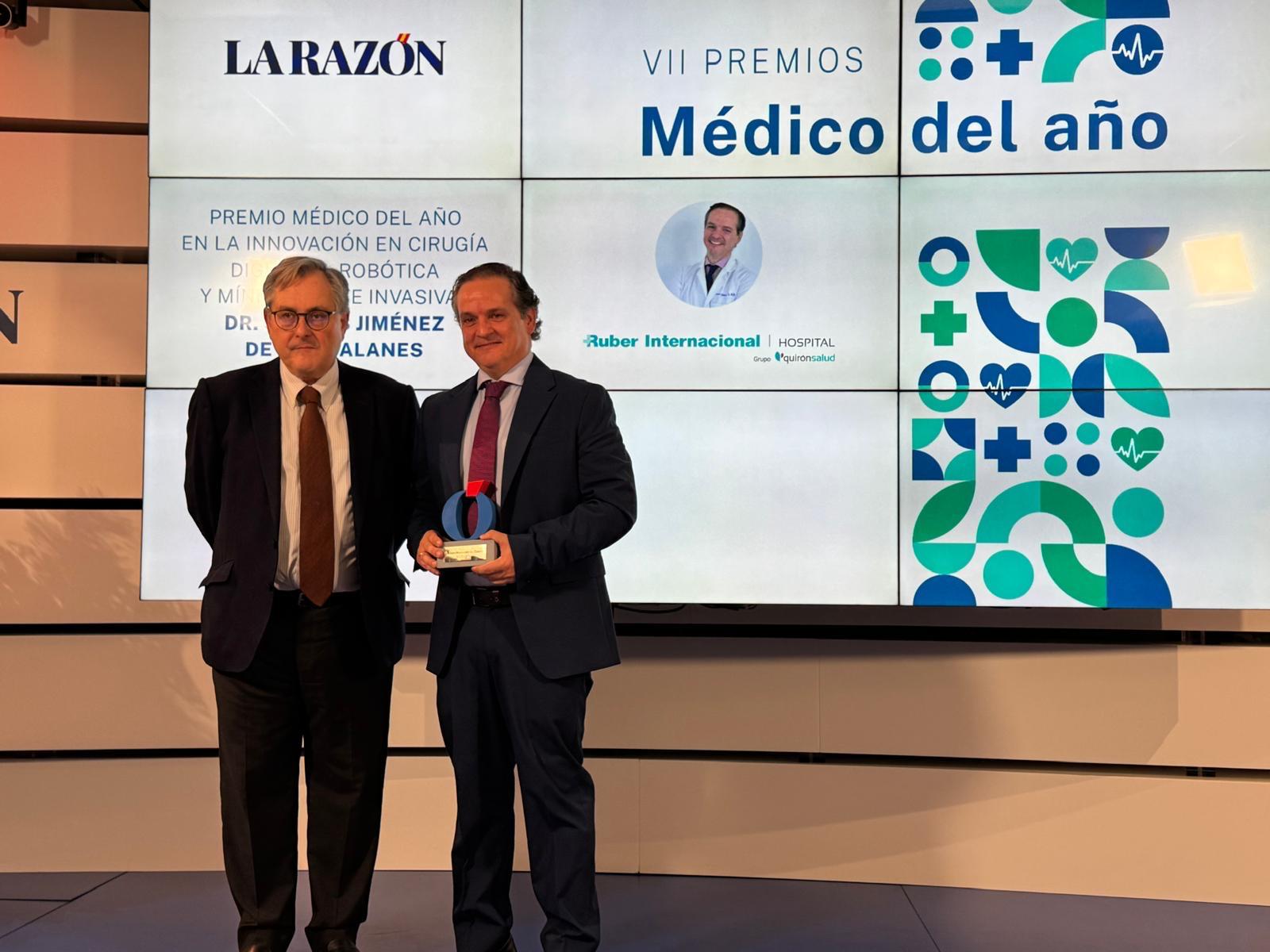 Daimiel Noticias.– El cirujano daimieleño Santos Jiménez de los Galanes Marchán, coordinador de cirugía hepatobiliopancreática en varios hospitales de Quirón Salud y Jefe de Servicio en el Hospital Universitario Infanta Elena, ha sido galardonado con el prestigioso Premio Médico del Año a la Innovación en Cirugía Digestiva, Robótica y Mínimamente Invasiva, concedido por el periódico La Razón.