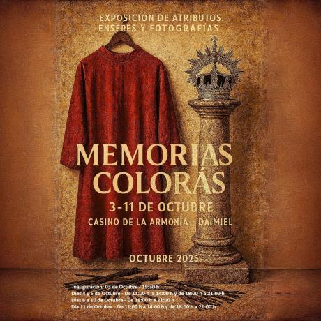 Dos semanas antes de la procesión, el próximo viernes 3 de octubre a las 19:30 horas, Los Coloraos inaugurarán en el Casino de la Armonía una exposición temática que recopilará gran parte de la historia y el patrimonio material de la cofradía.