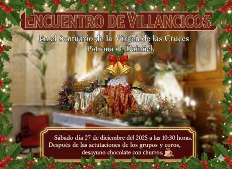 El santuario de Nuestra Señora de las Cruces acogerá el sábado 27 de diciembre a partir de las 10:30 horas el tradicional encuentro de villancicos organizado por la hermandad de nuestra patrona. Su presidente, Manuel Vicente López de la Nieta, animó a los daimieleños a acudir e hizo una invitación extensiva a todas las agrupaciones corales de la localidad para que participen en el encuentro.