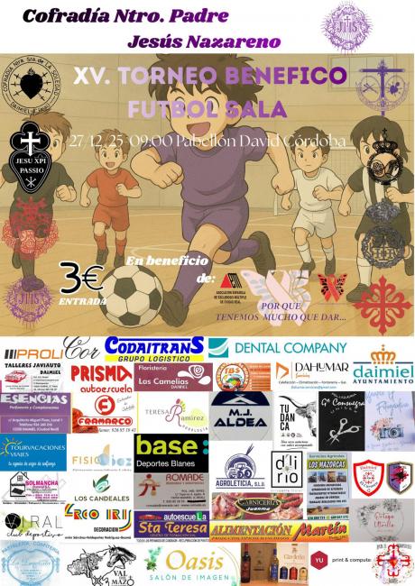El sábado 27 de diciembre, el Pabellón Cubierto David Córdoba acogerá el XV Torneo Benéfico de Fútbol Sala, impulsado por la Cofradía de Nuestro Padre Jesús de Nazareno.