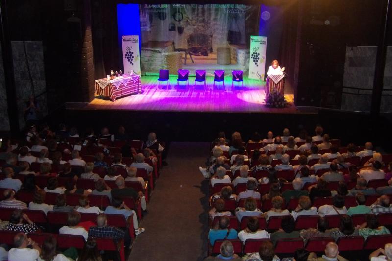 El escenario del Teatro Ayala acogió anoche el acto central de la Fiesta de la Vendimia de Daimiel, un evento cargado de buenos momentos en el que la mantenedora de la fiesta, María de las Cruces García Muñoz, ofreció un emotivo pregón en el que combinó tradición, futuro y esperanza. Además, Teo Martínez recibió el título de pisador de honor y el matrimonio formado por Manuel Gómez Caraballo, ‘El Mellao’, y Encarnación Díaz del Campo fueron proclamados oficialmente los vendimiadores de honor.