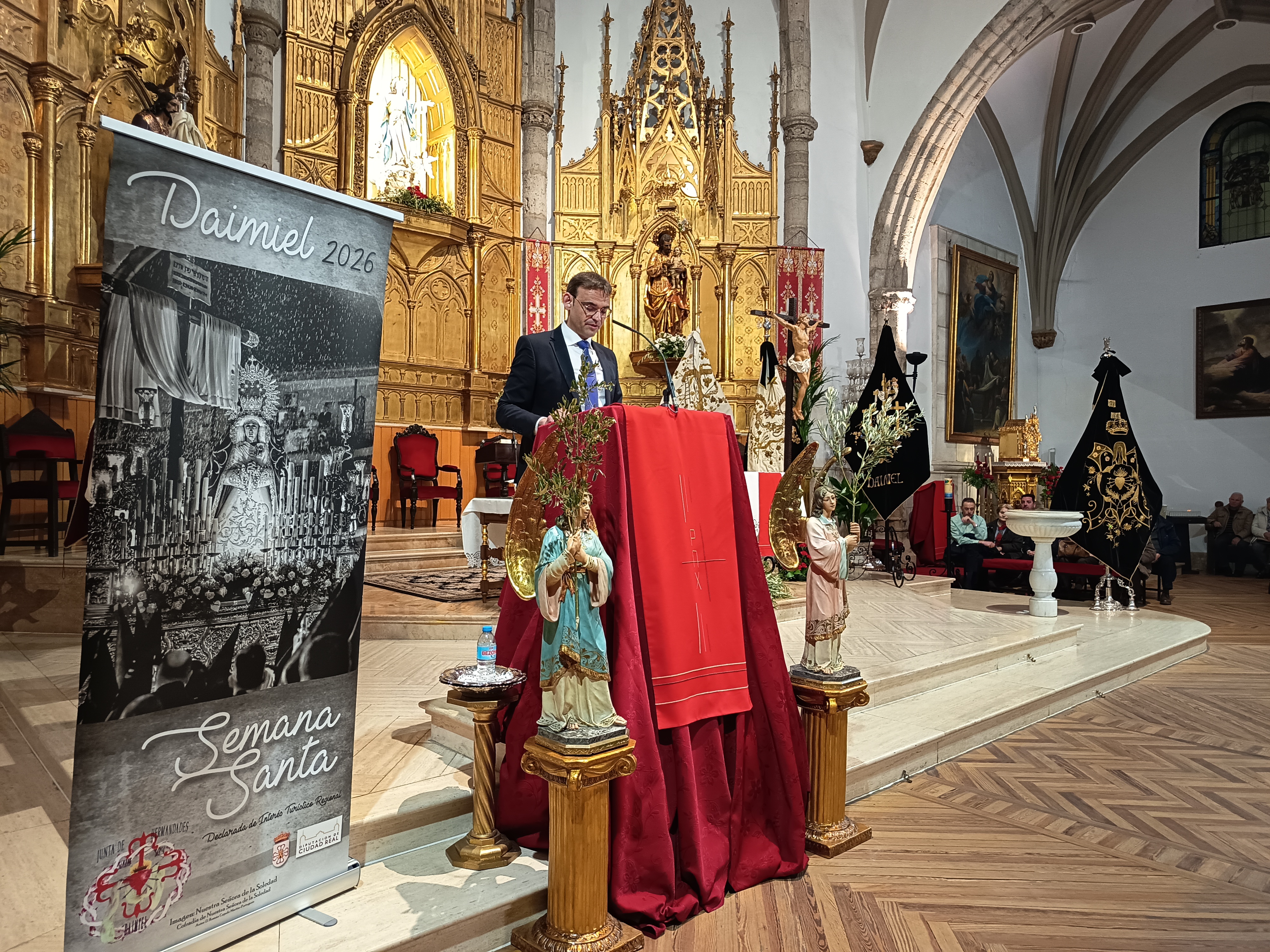 Daimiel Noticias. – La parroquia de Santa María se llenó por completo este sábado por la noche para asistir al pregón oficial de la Semana Santa daimieleña, responsabilidad que recayó en el Profesor Titular de Organización de Empresas en la Universidad de Castilla-La Mancha, Jesús David Sánchez de Pablo.