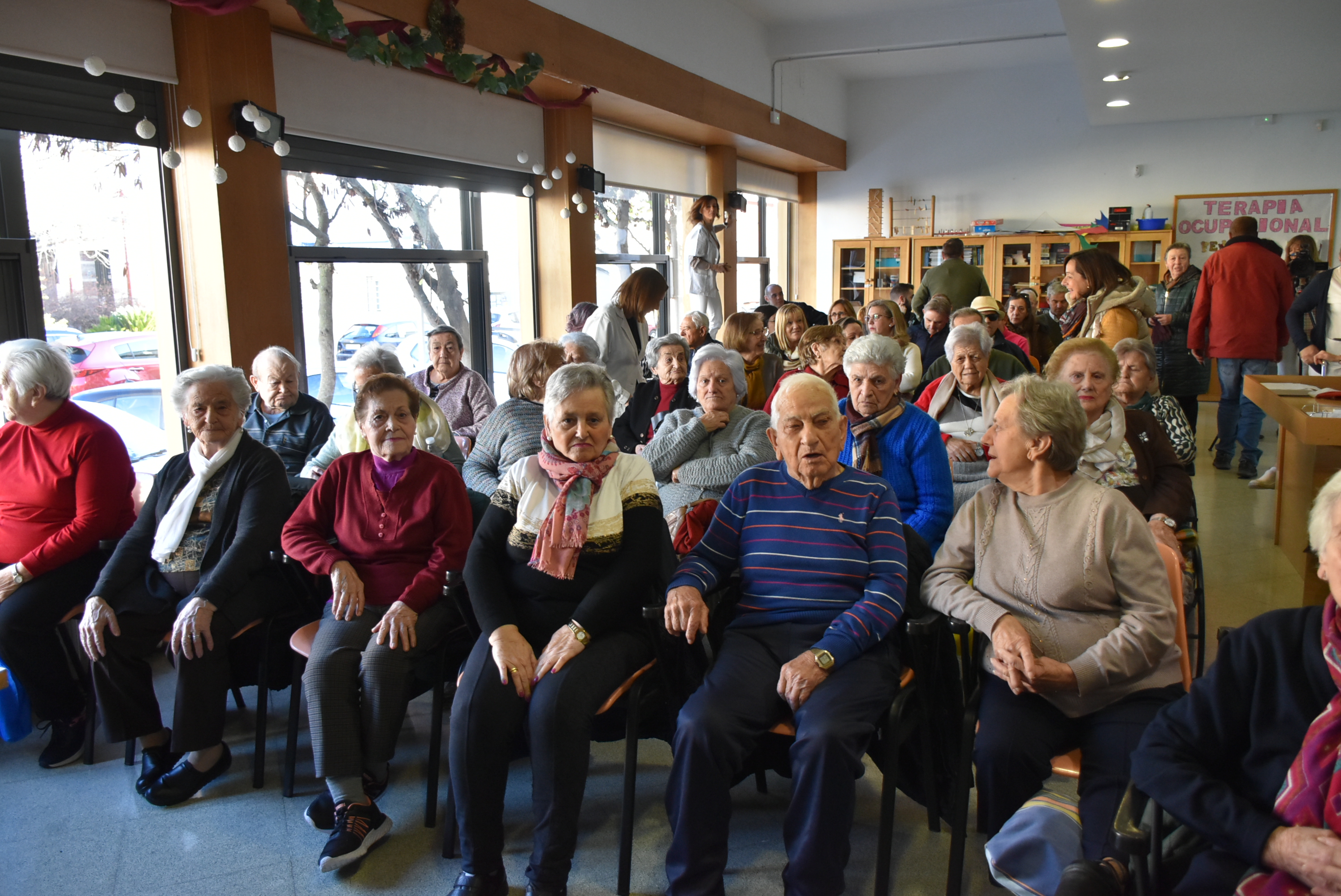 Familiares de los usuarios y usuarias del Centro de Día los han acompañado en una mañana entrañable en la que han proyectado un emotivo vídeo navideño realizado por los mayores estos últimos meses. Un encuentro al que ha acudido la concejala de Servicios Sociales, Alicia Loro.