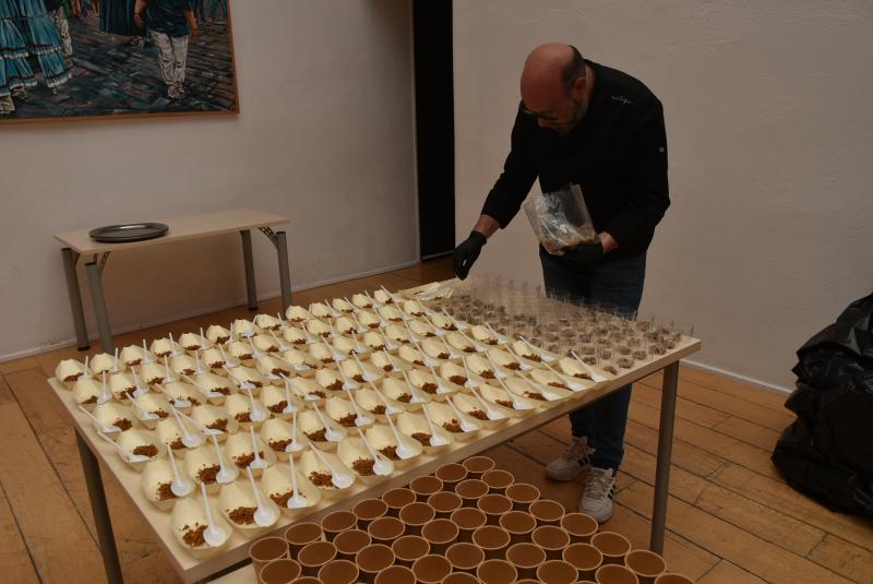 Para acompañar y reponer fuerzas, las asociaciones culturales daimieleñas estuvieron vendiendo tapas tradicionales manchegas como migas, gachas, chorizos, pisto y una tapa realizada por el chef Rubén Sánchez-Camacho de arenque marinado con gazpacho de albahaca.