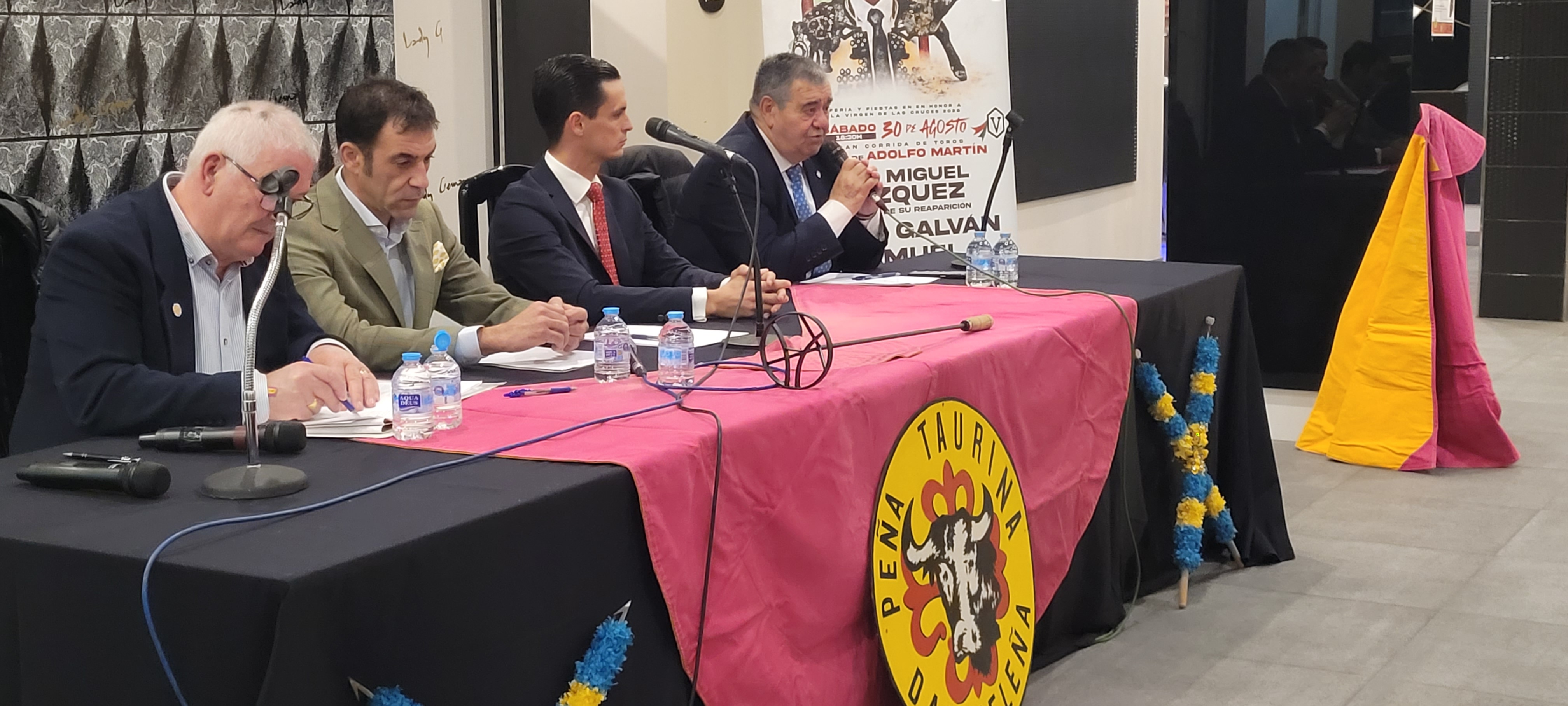 El sábado por la tarde se celebró en los Salones Lady Gema la tertulia taurina bajo el título ‘Luces y sombras del toreo’, en la que intervinieron el presidente nacional de UFTAE, Jorge Fajardo; el torero Luís Miguel Vázquez; y el torero triunfador de la Feria 2025, David Galván. La tertulia, abierta al público, contó con una notable asistencia y precedió a la tradicional cena de hermandad y a la entrega del Trofeo Triunfador, que este año fue entregado a David Galván por el alcalde, Leopoldo Sierra, junto al vicepresidente de la peña.