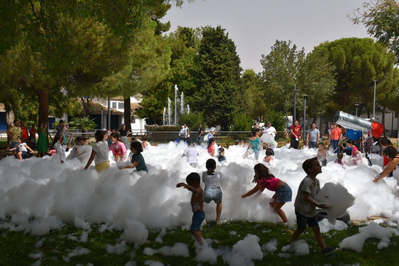 El Parque del Carmen fue el punto de reunión, donde a partir de la una del mediodía se llevaron a cabo juegos tradicionales, precedidos por una fiesta de la espuma de la que disfrutaron niños y niñas de todas las edades.