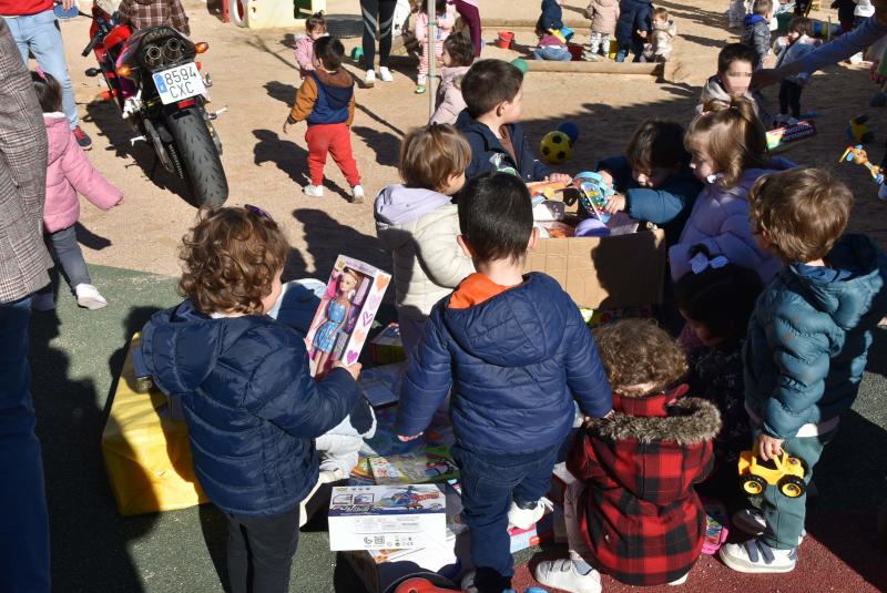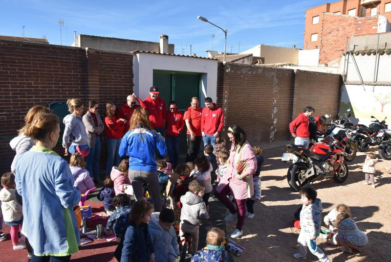 Daimiel Noticias.– El grupo motero Los Colaos ha entregado este lunes a la Escuela Infantil Sancho los juguetes que reunieron en la papanoelada que celebraron durante la mañana de Nochebuena. Un cargamento que ha desatado la locura entre los niños y niñas que, reunidos en el patio, han revivido por unos minutos la ilusión que experimentaron el día de Navidad o el de Reyes.