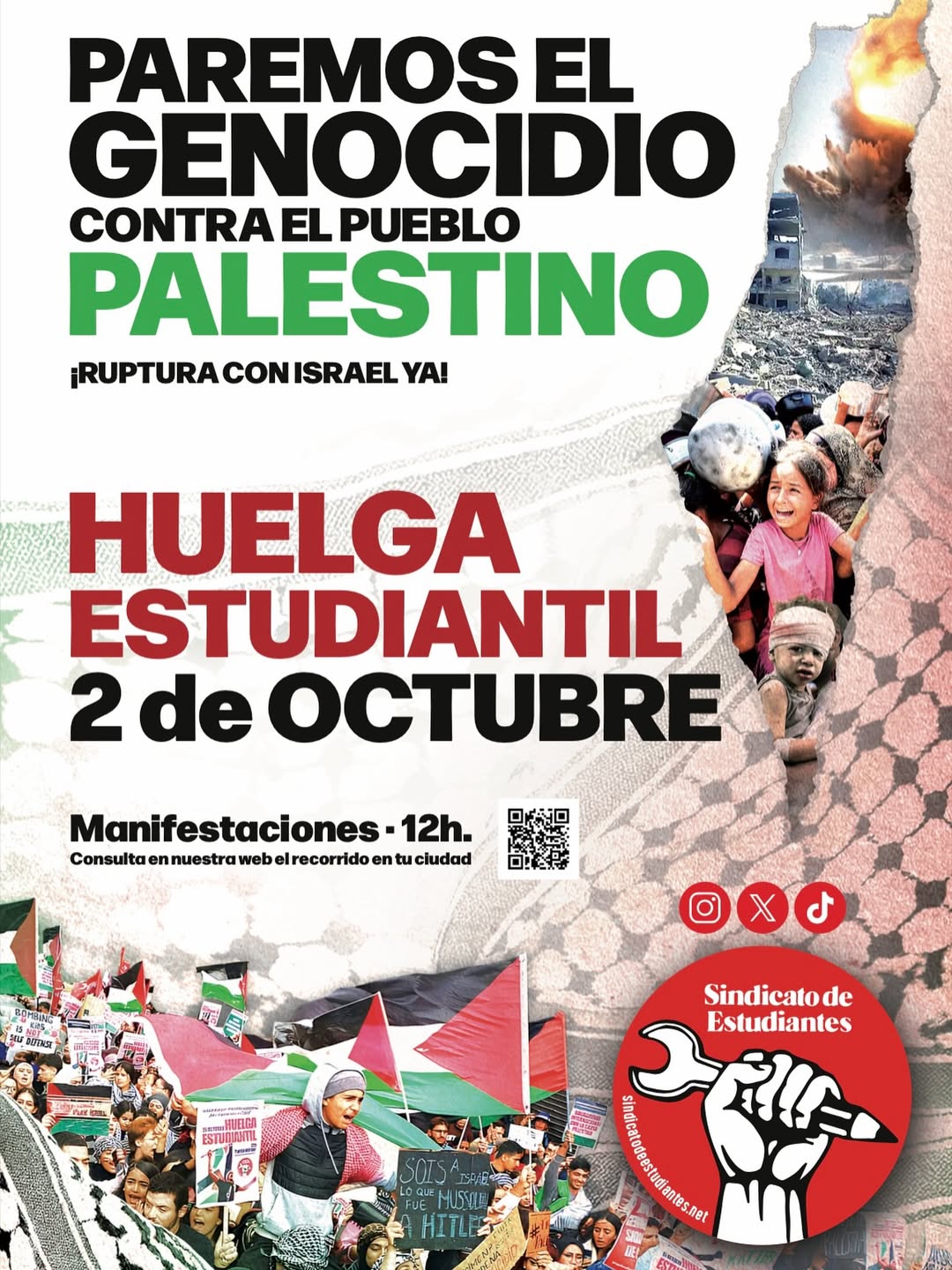 Daimiel Noticias.- La huelga general estudiantil convocada por el Sindicato de Estudiantes para hoy 2 de octubre se ha dejado notar entre el conjunto de estudiantes local con cifras similares en los dos institutos públicos de Daimiel. El parón, ha sido movilizado por la plataforma a nivel estatal “para denunciar el genocidio contra el pueblo palestino y exigir el respeto de los derechos humanos”, según afirma su convocatoria.