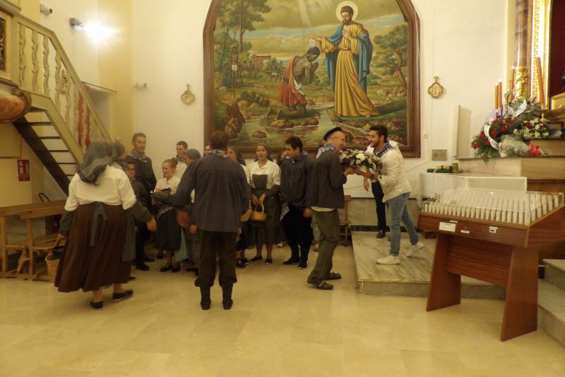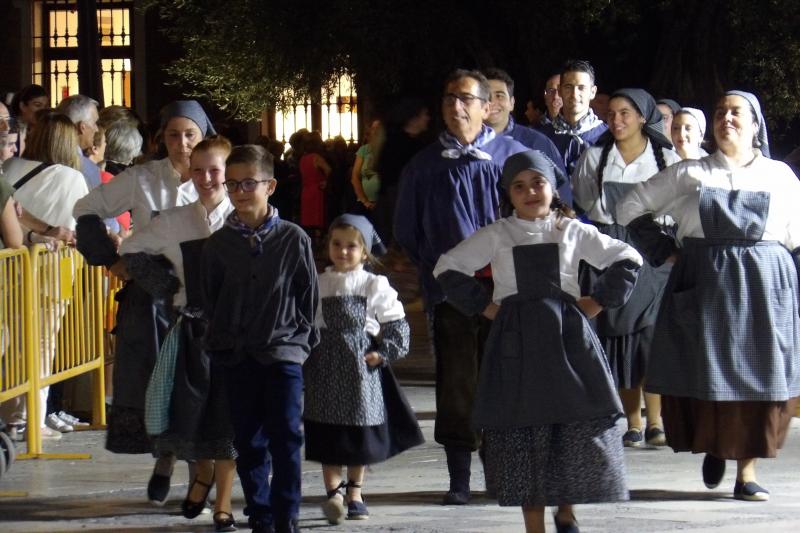 El sábado por la tarde las calles de Daimiel se preparaban para recibir la tradicional ‘Cabalgata de la Uva’, que comenzó con las ofrendas ante el altar de Nuestro Padre Jesús Nazareno en la Iglesia de la Paz. Asociaciones, grupos, familias y personas a título individual desfilaron con sus ofrendas que este año, además de flores y alimentos, también fueron canciones, pues distintas agrupaciones se juntaron para deleitar a los presentes con una de las muestras más populares del cancionero manchego, ‘A La Mancha manchega’. Un año más, las ofrendas recolectadas han sido entregadas a la congregación de las Carmelitas Descalzas de Daimiel.