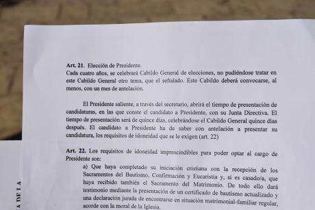 Este establece que en “la presentación de candidaturas, debe constar el presidente con su Junta Directiva”. En declaraciones a los medios locales, López de la Nieta detalló que esa junta debe estar constituida por “miembros fundamentales”, incluyendo al menos “secretario, tesorero o vicesecretario, y también los priostes, que son los encargados de la Virgen”. Al no cumplir con esta exigencia estatutaria, la candidatura de Ruiz de la Hermosa ha sido desestimada.
