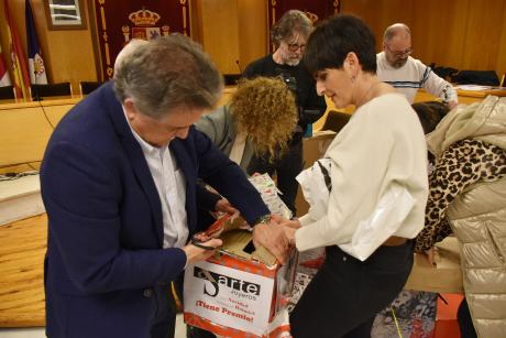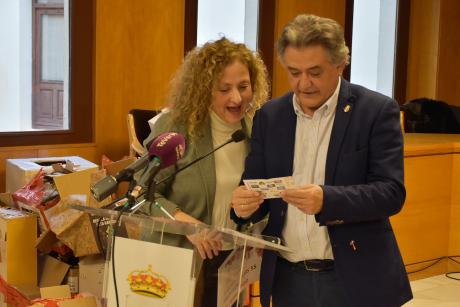 Minutos después aparecía en el salón de plenos para recibir su premio. Se lo entregaban el alcalde, Leopoldo Sierra, y la concejala de Promoción Económica, Cruces Sánchez de Pablo, que ha conducido el sorteo.