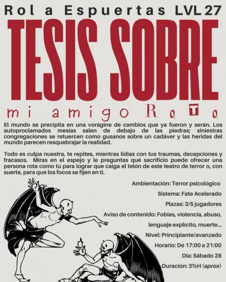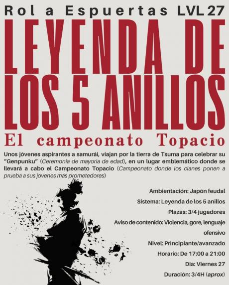 El viernes 27 de marzo se desarrollarán partidas de ‘La leyenda de los cinco anillos’, ‘Zombieworld’ y ‘Paranoia’. El primero se ambienta en un mundo inspirado en el Japón feudal con elementos fantásticos, donde los jugadores interpretan a samuráis al servicio de un emperador divino. Por su parte, ‘Paranoia’ es un juego de ciencia ficción distópico y satírico ambientado en un refugio controlado por una inteligencia artificial llamada “El Ordenador”, donde los jugadores deben cumplir misiones mientras ocultan sus propios secretos. Completa la jornada ‘Zombieworld’, una propuesta de supervivencia en medio de un apocalipsis zombi.