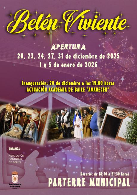 Esa misma tarde se inaugurará el Belén Viviente, otro clásico de la Navidad en Daimiel organizado por la asociación Pastores de Belén. La academia de baile Amanecer ambientará los primeros instantes de una apertura oficial de puertas con proclamación de mayoral incluido desde las 19:00 horas.