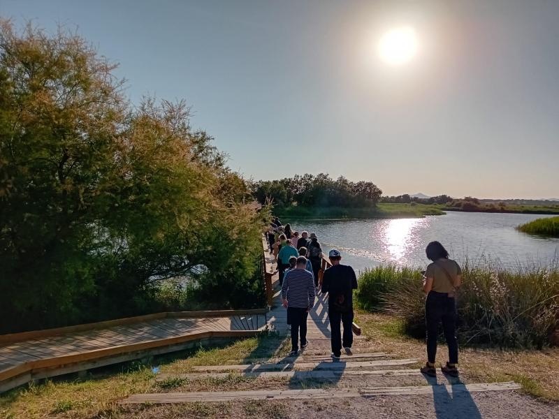 Ejemplares de carriceros comunes, cigüeñelas y de las especies de anátidas que ahora mismo se dejan ver y oír en el parque nacional fueron la banda sonora de este recorrido que también sirvió para repasar la historia y la etnografía del humedal.